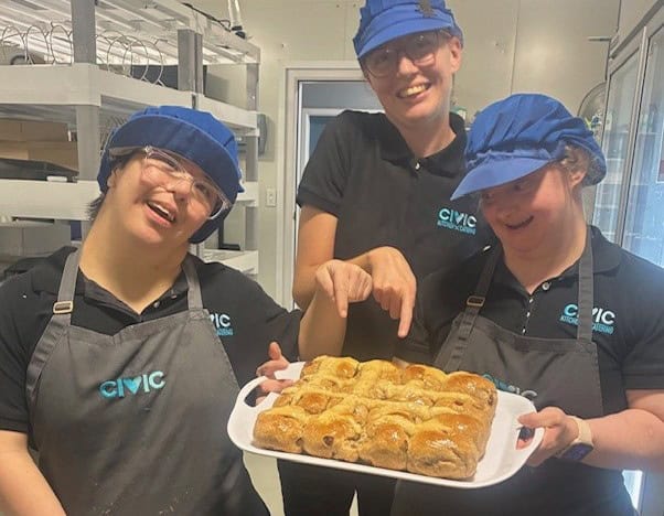 Before long, the trays were ready for the oven and as the buns baked, the warm, comforting aroma of Easter drifted through the warehouses and up into the office. It was a simple activity but one that brought people together, celebrated new skills and created a shared moment of connection at the Cawarra cafe.