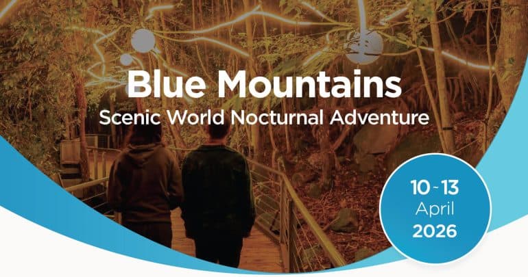 Descend into the darkness on the world’s steepest railway and watch the rainforest come to life! This immersive, sensory journey takes you deep into the Jamison Valley for an interactive experience unlike any other. Meander beneath a canopy of light trees, discover the “wood wide web” and see the iconic Three Sisters glowing against the night sky.