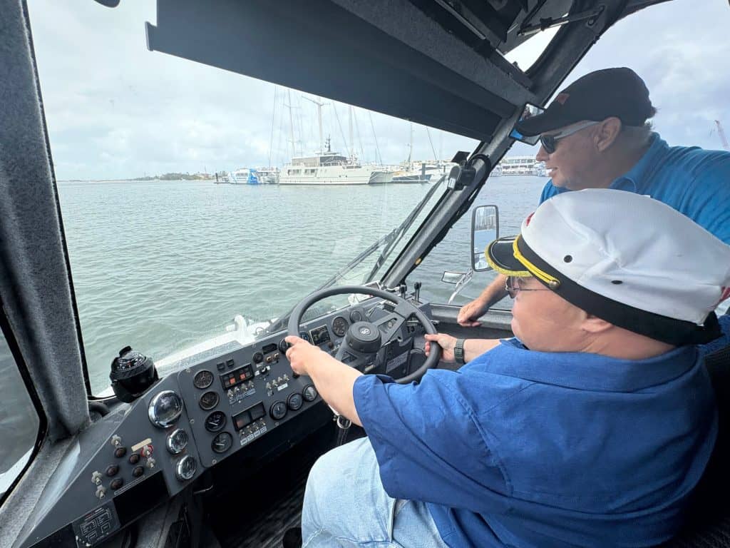 The undisputed highlight of the trip was the Aquaduck Tour. The group loved the transition from land to sea, but the real magic happened when participants Michael and Bradley were invited to take the helm. Under the guidance of the Skipper, both navigated the ‘Duck’ through the Gold Coast waters, a thrill that had the whole group cheering!